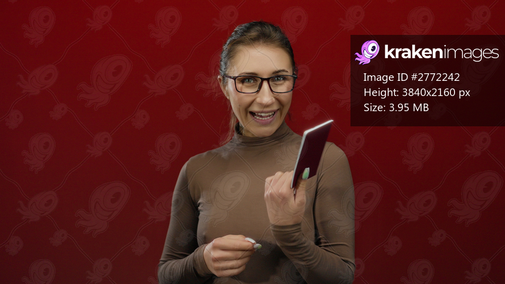 Young woman holding thailand passport excitedly against an isolated red background showcasing travel ideals.