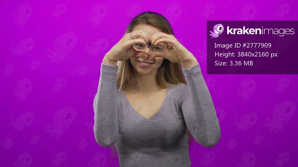 Young woman making heart gesture with fingers against vibrant pink background over isolated wall displaying cheerful and playful expression symbolizing love and happiness - Kraken Images