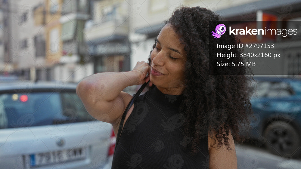 Young woman on a busy street smiling under sunlight, showcasing city life with cars and buildings in the background, representing urban vibrancy and outdoor joy. - Kraken Images