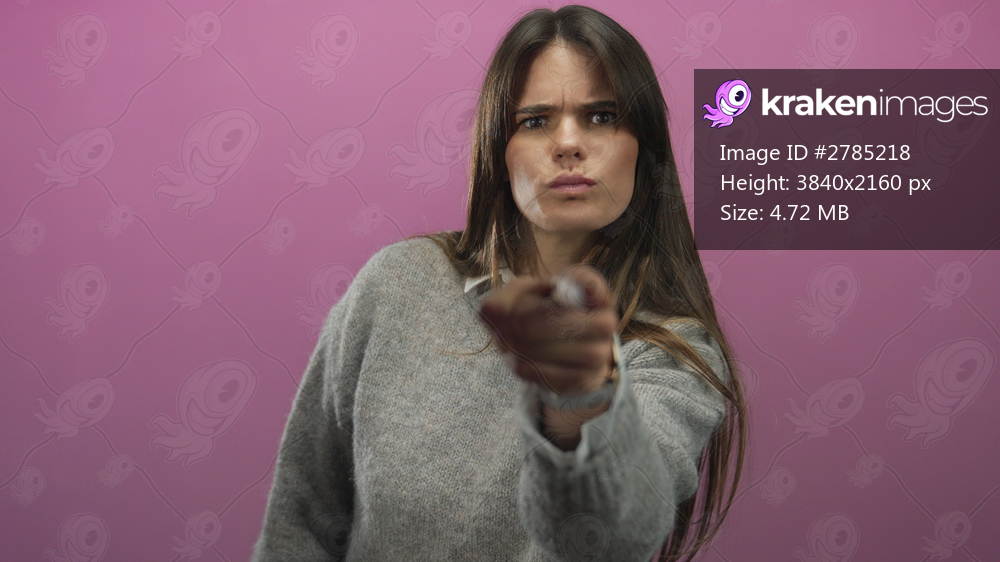Young woman pointing with expression over isolated pink background.