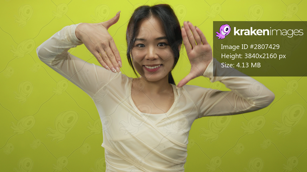 Young woman posing over isolated yellow background creating a frame with hands smiling confidently