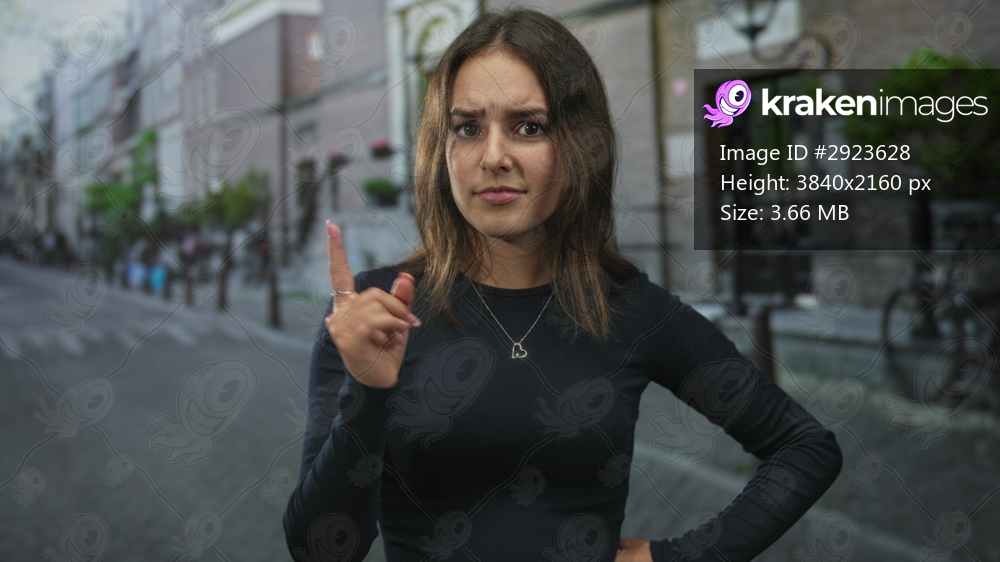 Young woman standing with hand on hip on street in city wearing black shirt and heart necklace; confidence resilience.